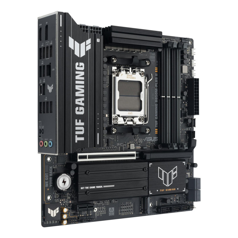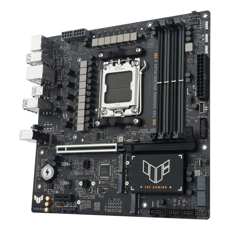 ASUS TUF GAMING B850M-PLUS II takes all the essential elements of the latest AMD Ryzen™ processors and combines them with game-ready features and proven durability. Engineered with military-grade components, an upgraded power solution and a comprehensive cooling system, this motherboard goes beyond expectations with rock-solid and stable performance for marathon gaming. TUF GAMING motherboards also undergo rigorous endurance testing to ensure that they can handle conditions where others may fail. This platform delivers the power and connectivity that advanced AI PC applications demand.