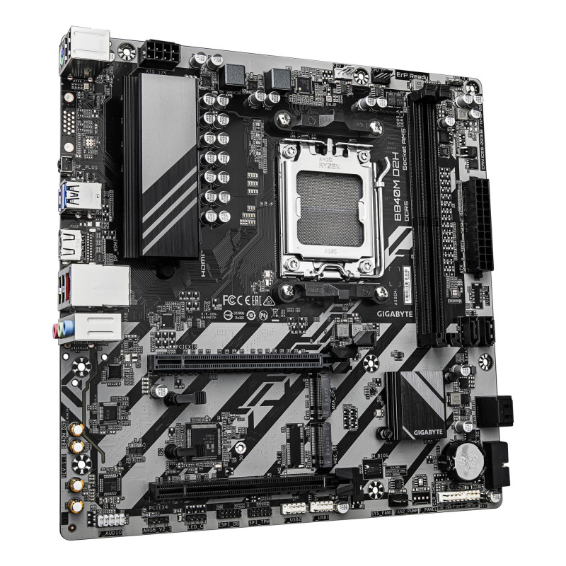 | Santrauka | „GIGABYTE B840M D2H“ pagrindinė plokštė – AMD Ryzen 9000 procesoriai, 5+2+2 fazių VRM, iki 7600MHz DDR5, 1xPCIe 4.0 + 1xPCIe 3.0 M.2, 2.5GbE LAN, USB 3.2 Gen 1. Procesoriaus gamintojas: AMD, Procesoriaus lizdas: Lizdas AM5, Suderinamos procesorių serijos: AMD Ryzen 7000 serija, AMD Ryzen 8000 serija, AMD Ryzen 9000 serija. Palaikomi atminties tipai: DDR5-SDRAM, Maksimali vidinė atmintis: 128 GB, Atminties lizdų tipas: DIMM. Palaikomos saugojimo įrenginių sąsajos: M.2, PCI Express 4.0, SATA III, Palaikomi saugojimo įrenginių tipai: HDD ir SSD, RAID lygiai: 0, 1, 10. Maksimali raiška: 4096 x 2160 pikselių. Ethernet sąsajos tipas: 2.5 Gigabito Ethernet, LAN valdiklis: Realtek RTL8125. |