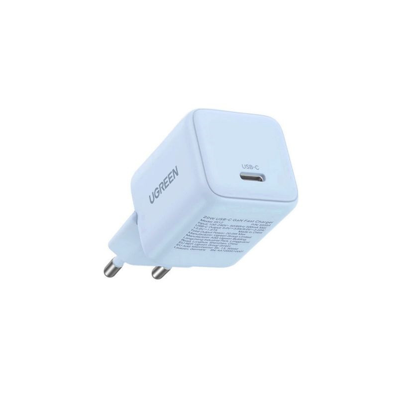 UGREEN X512 yra mėlynas 20W USB-C maitinimo adapteris, sukurtas greitam mobiliųjų telefonų įkrovimui. Jis veikia su įėjimo įtampa 100-240 V ir turi vieną USB Type-C prievadą.