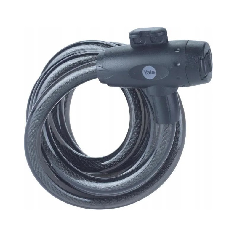 Dviračio kabelis su 12 mm skersmens plieniniu branduoliu, 200 cm ilgio. Raktinis užraktas.