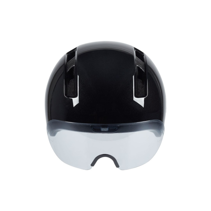 HJC CALIDO PLUS Black dviračių šalmas suaugusiems turi reguliuojamą dydį, tinkantį galvos apimčiai nuo 51 iki 56 cm. Jame yra keturi ventiliacijos angos, nuimamas magnetinis skydelis ir magnetinė sagtis, užtikrinanti saugų užsegimą.