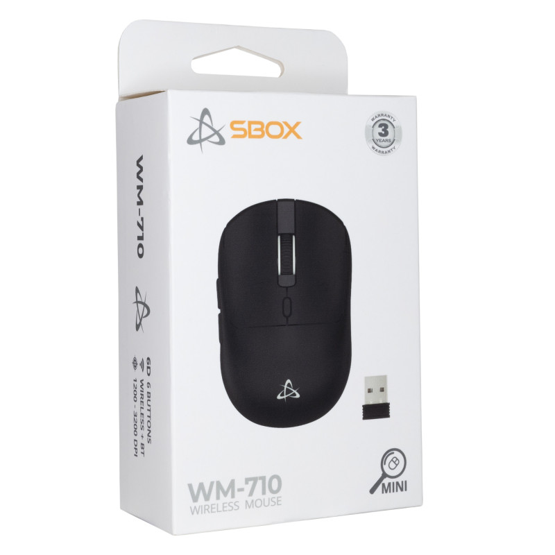 „SBOX WM-710“ pelė yra universalus 6D įrenginys, turintis optinį jutiklį su reguliuojamu DPI diapazonu nuo 1200 iki 3200.