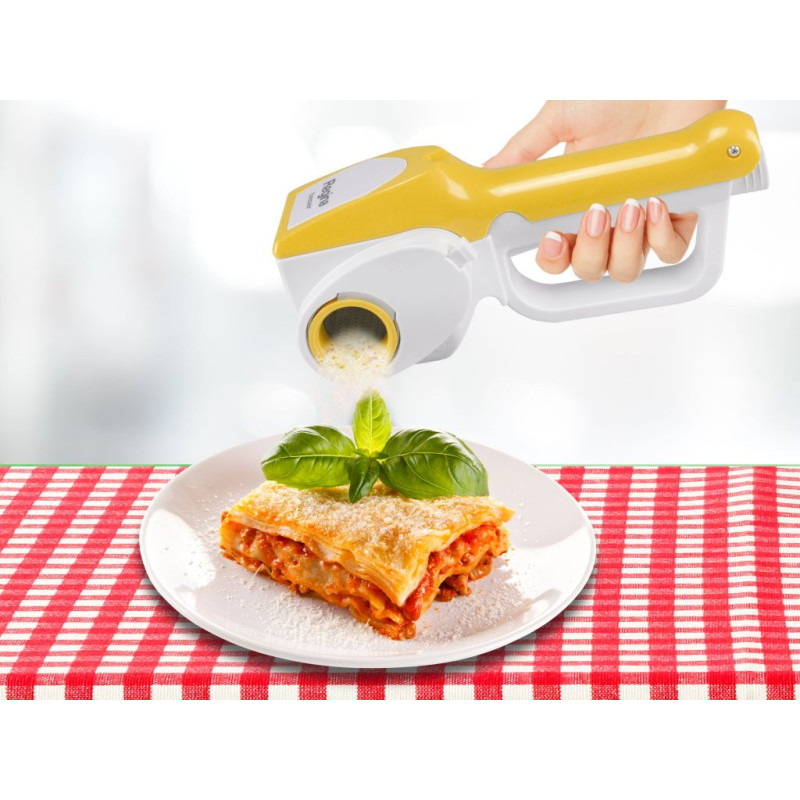 Belaidė tarka su dviem lengvai keičiamais plieniniais voleliais minkštiems arba pagardintiems sūriams. Įkraunama baterija, kurią galima padėti ant įkrovimo pagrindo, veikimo laikas iki 40 minučių. Ergonomiška rankena patogiam suėmimui. Puikiai tinka padėti ant stalo. Pridedamas įkrovimo pagrindas ir adapteris.