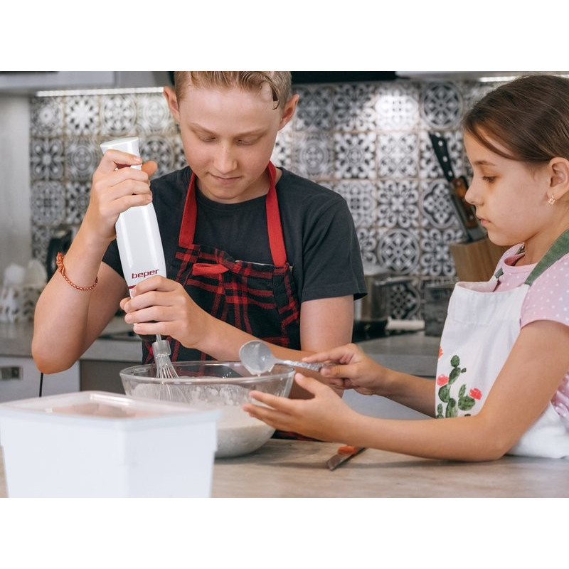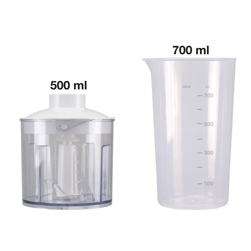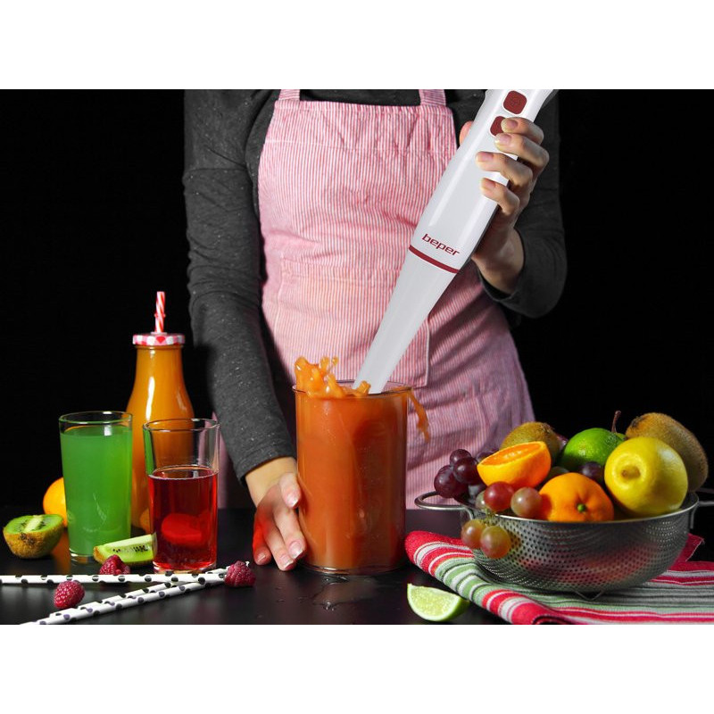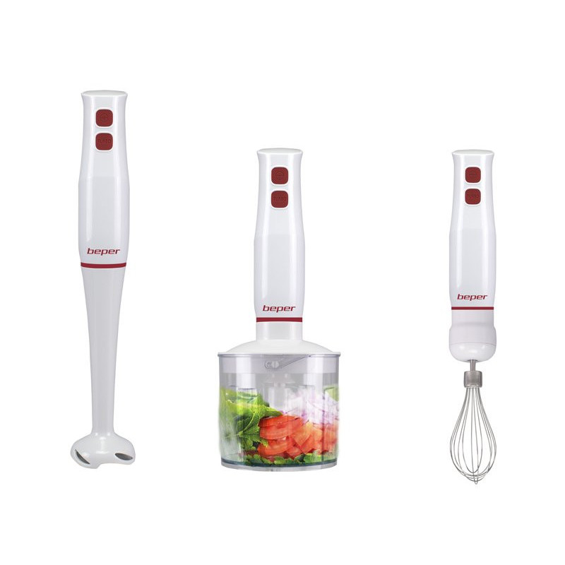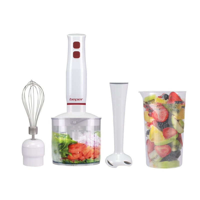 4 viename trintuvas idealiai tinka maišyti, trinti ir smulkinti. Įvairūs priedai: panardinimo velenas su 2 nerūdijančio plieno peiliukais, nerūdijančio plieno plaktuvai, smulkintuvas su 500 ml graduotu indu ir nerūdijančio plieno peiliukais, 700 ml graduotas indas. Du pasirenkami greičiai geresniam maisto sumaišymui. Ergonomiška rankena patogiam suėmimui.
