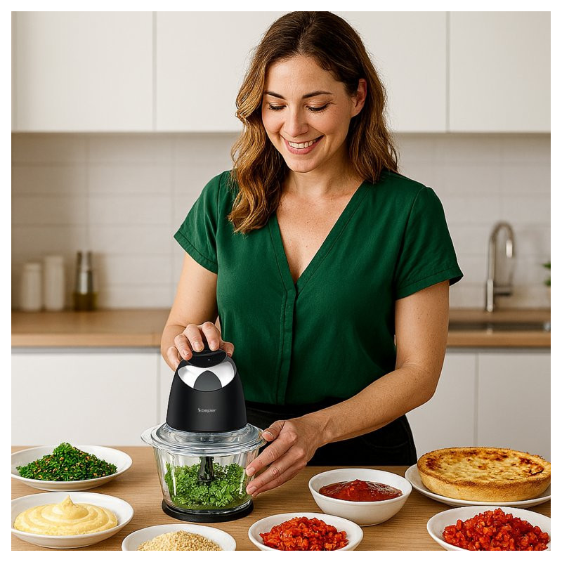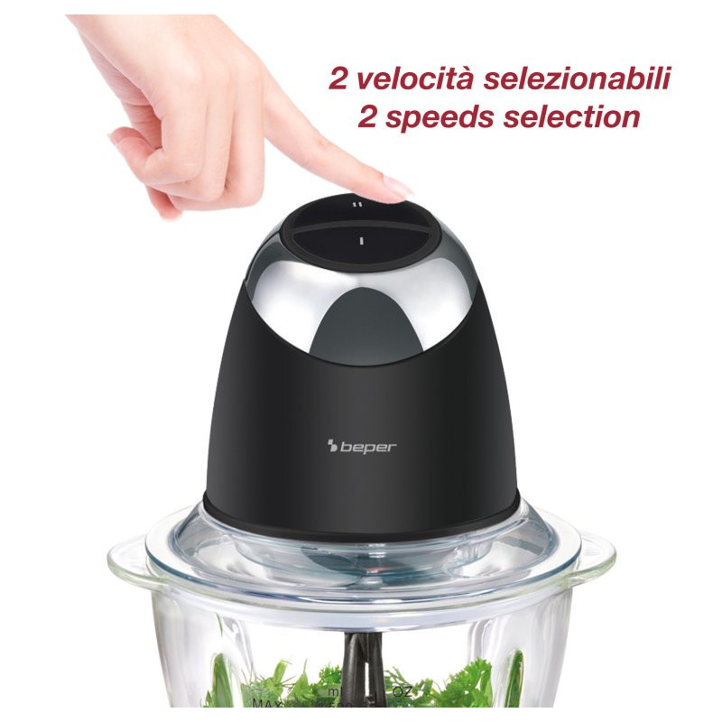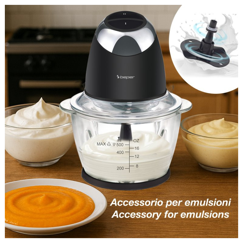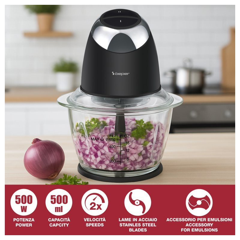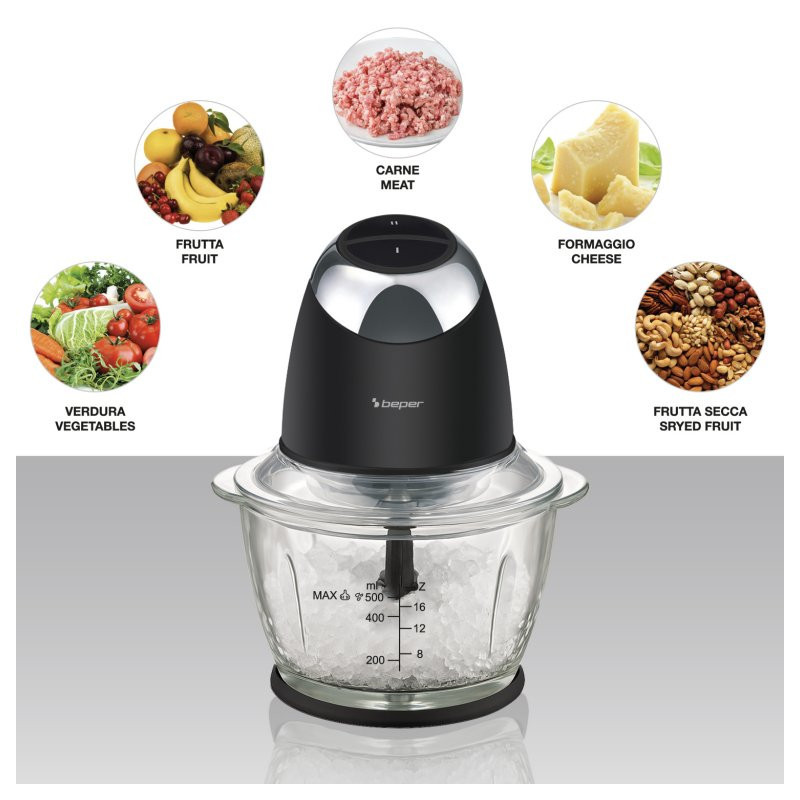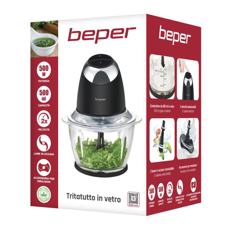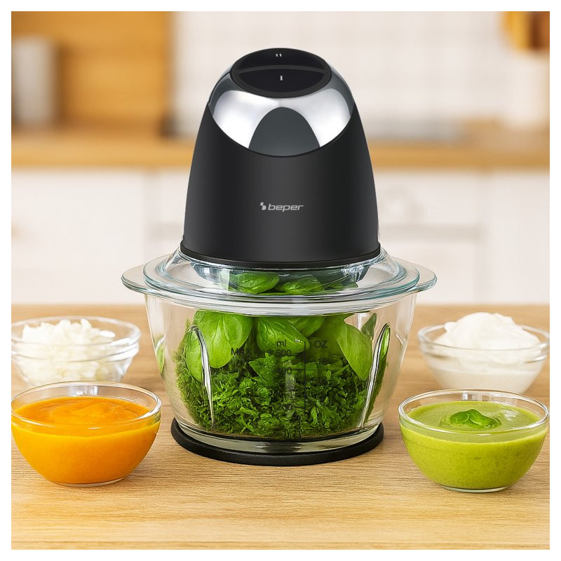 Kompaktiškas ir galingas „Beper“ smulkinimo aparatas su 500 ml stikliniu indu yra puikus pagalbininkas kasdieniams virtuvės ruošimo darbams.