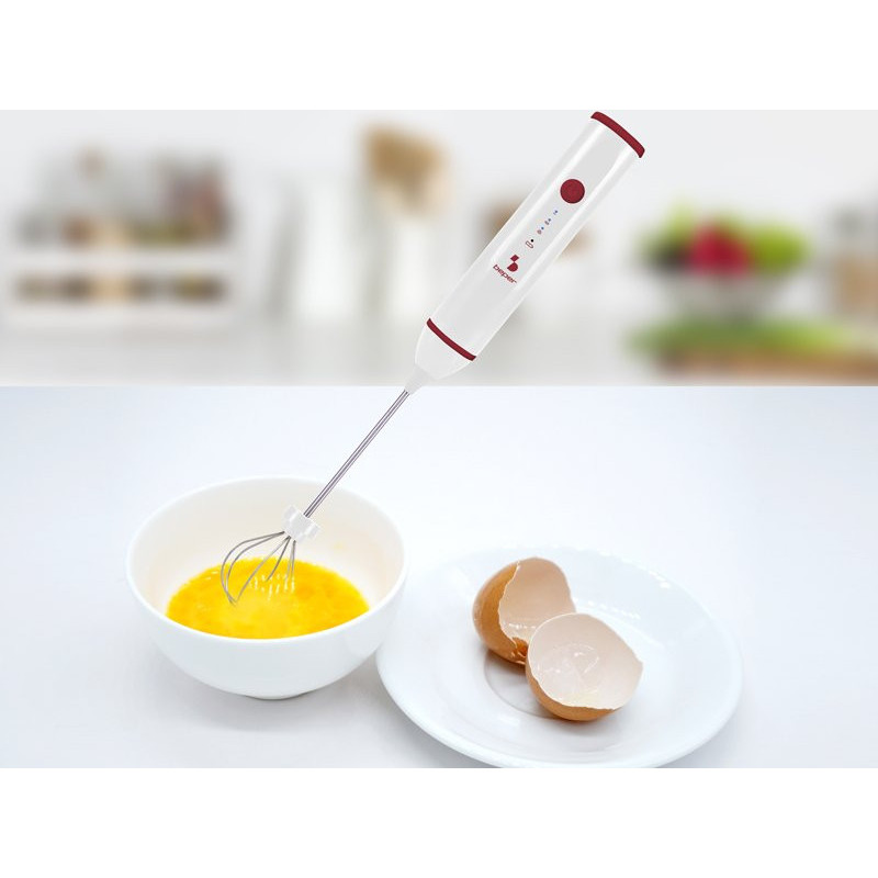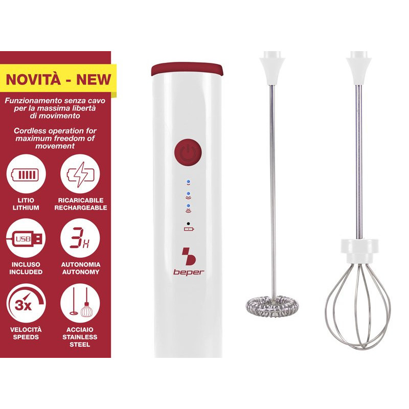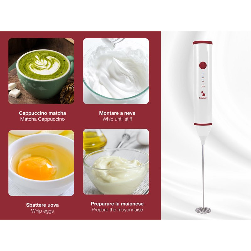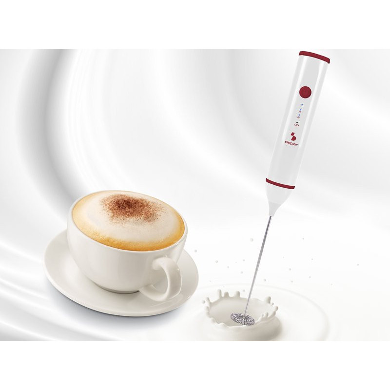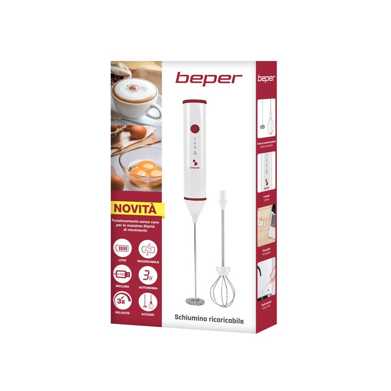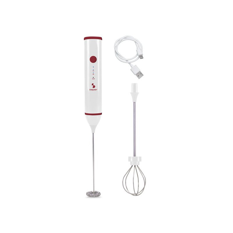 Įkraunamas plakiklis su USB laidu (pridedamas), idealiai tinka pienui plakti ir kapučino bei matcha ruošimui. Taip pat pridedamas praktiškas plieninis plaktuvas įvairiems maisto produktams, pavyzdžiui, kiaušiniams ir grietinėlei, plakti. Jis turi tris pasirenkamus greičio lygius, yra lengvai valdomas ir valomas. Įkraunamas maždaug per 3 valandas, kad būtų galima naudoti 3 valandas.