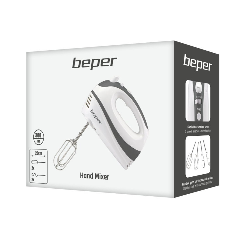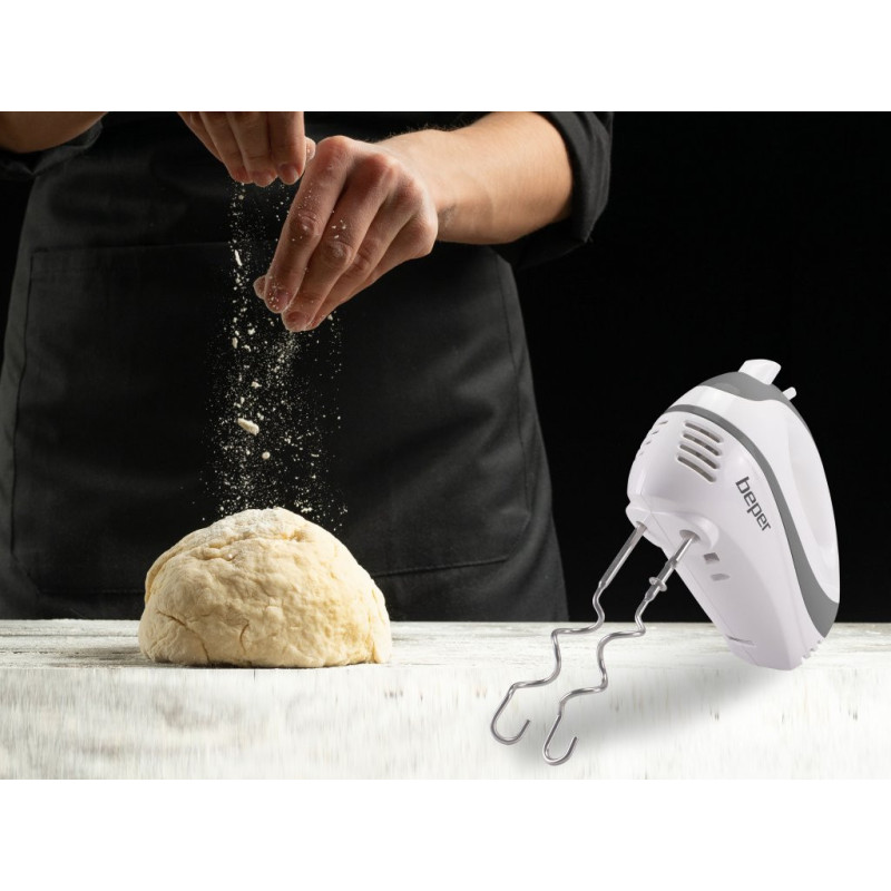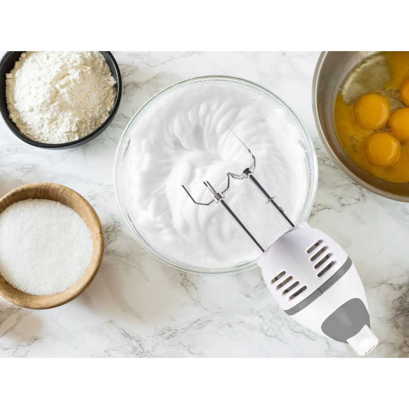 Elektrinis rankinis maišytuvas idealiai tinka kiaušinių plakimui, tešlos minkymui ir kremų bei desertų maišymui. Pasižymi 5 greičiais ir turbo funkcija, kad tešla būtų vientisesnė. Į komplektą įeina plaktuvai ir minkymo kabliai, abu pagaminti iš nerūdijančio plieno, 20 cm ilgio, idealiai tinka minkštai ir putotai tešlai. Juos galima nuimti plaktuvo atleidimo mygtuku ir galima plauti indaplovėje.