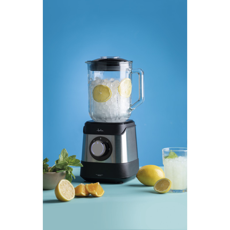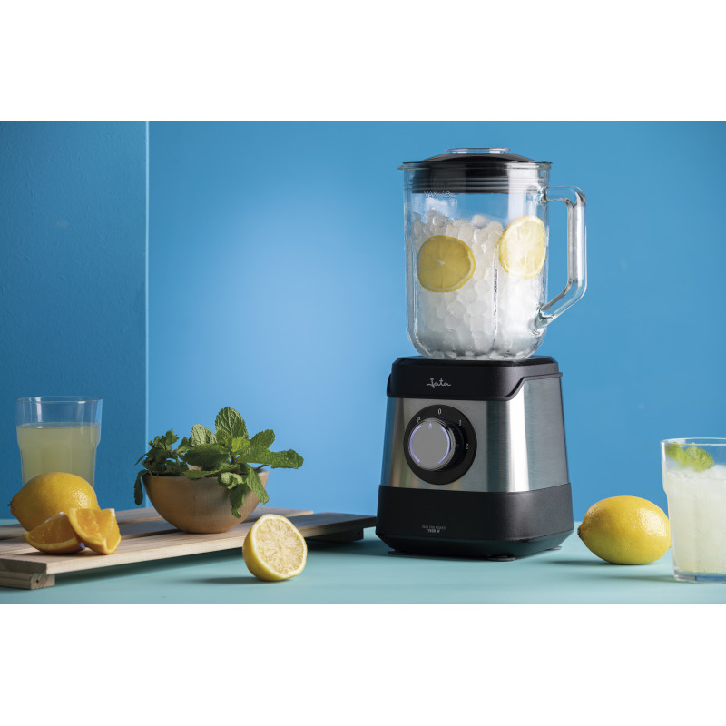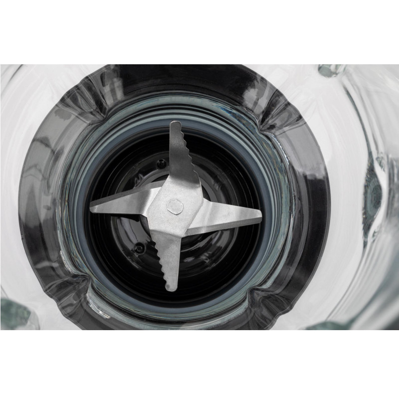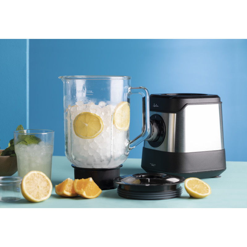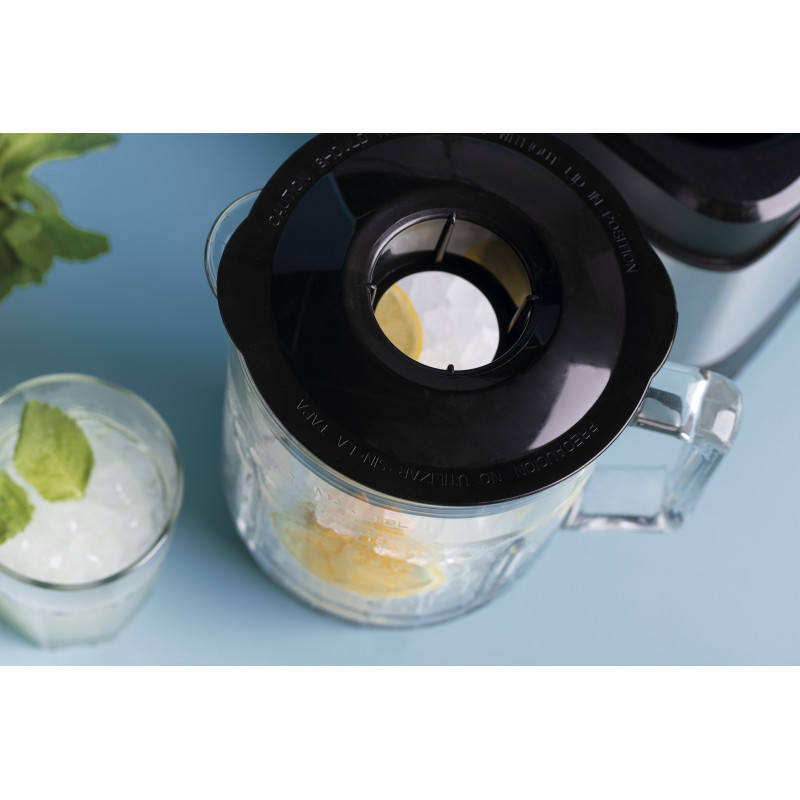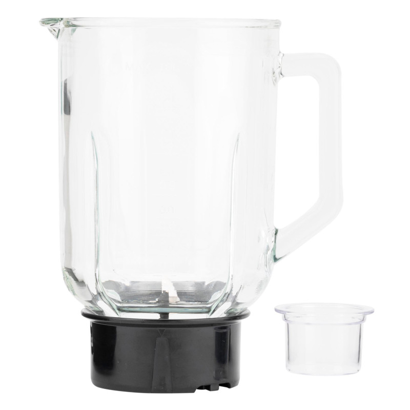 1,80 l talpos stiklinis ąsotis su graduota dangalu ir permatomu 45 ml matavimo dangteliu.