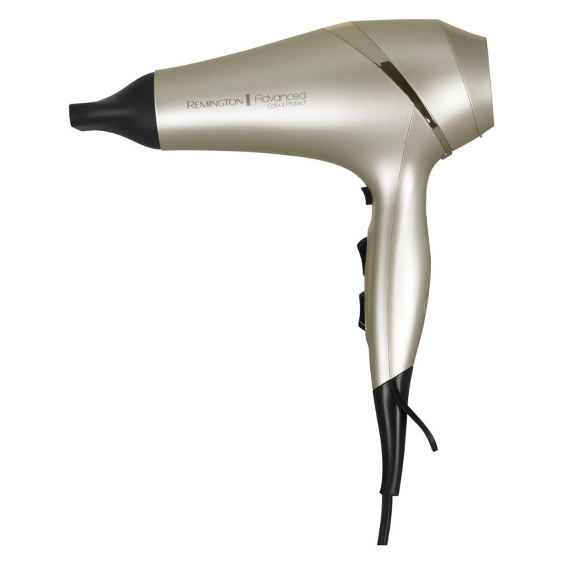 REMINGTON plaukų džiovintuvas Colour Protect turi galingą 2300W AC variklį ir pažangų temperatūros jutiklį, kuris apsaugo nuo perkaitimo. Jame yra 3 šilumos nustatymai, 2 greičio parinktys ir šalto oro funkcija, leidžianti įvairiai formuoti plaukus.