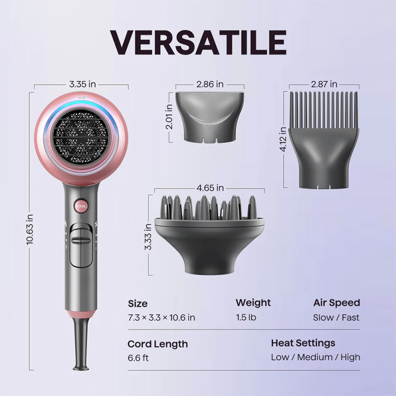 Plaukų džiovintuvas Wavytalk Blown Away su jonų technologija, kuri padeda išgauti glotnesnius, mažiau pasišiaušusius plaukus, užtikrina greitą plaukų džiūvimą. Tinka visiems plaukų tipams ir skirtingoms šukuosenų formavimo technikoms.