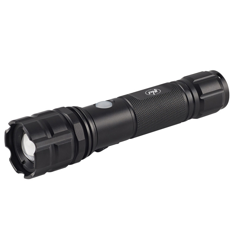 PNI Adventure F10 aliuminio žibintuvėlio komplektas su 6 W LED, 500 lm iki 200 m fokusavimo, su baterija ir PNI CHG300 maitinimo šaltiniu su USB C prievadu, QC3.0, PD3.0, PPS ir USB-A prievadu, 30 W