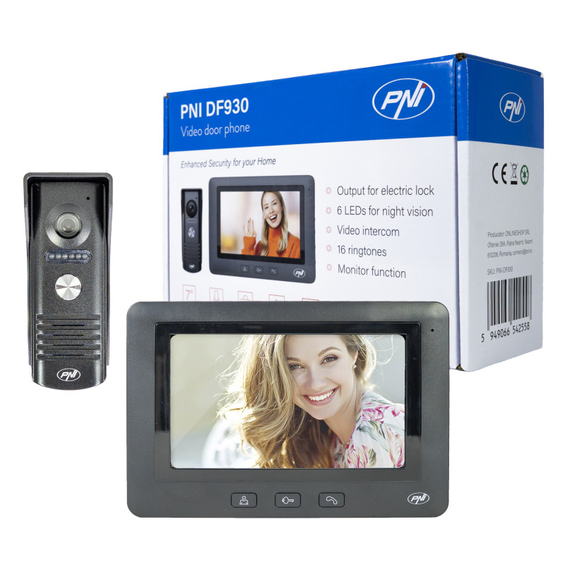 PNI DF930 vaizdo domofonas su 1 monitoriumi, 7 colių LCD ekranu, 800x480, elektromagnetine yala išvestimi, juodas