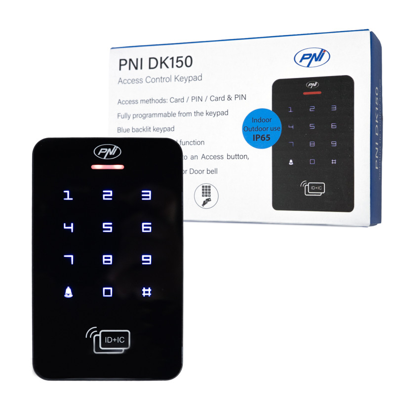 PNI DK150 autonominė prieigos kontrolės klaviatūra, PIN atrakinimas, RFID kortelė, IP65, juoda