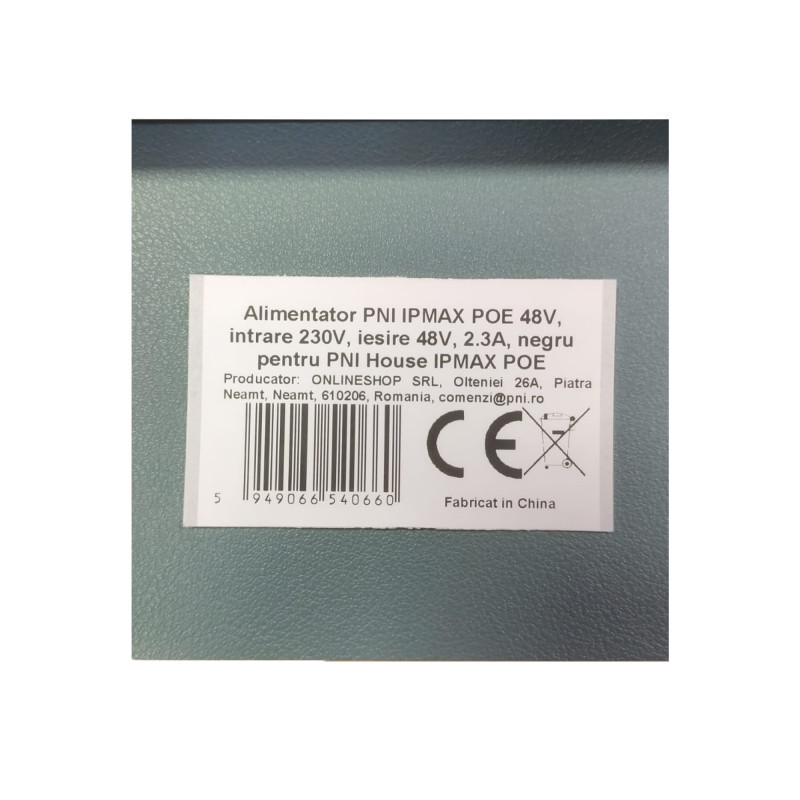 PNI IPMAX POE 48V maitinimo šaltinis, 230V įvestis, 48V išvestis, 2,3A, juodas, skirtas PNI House IPMAX POE