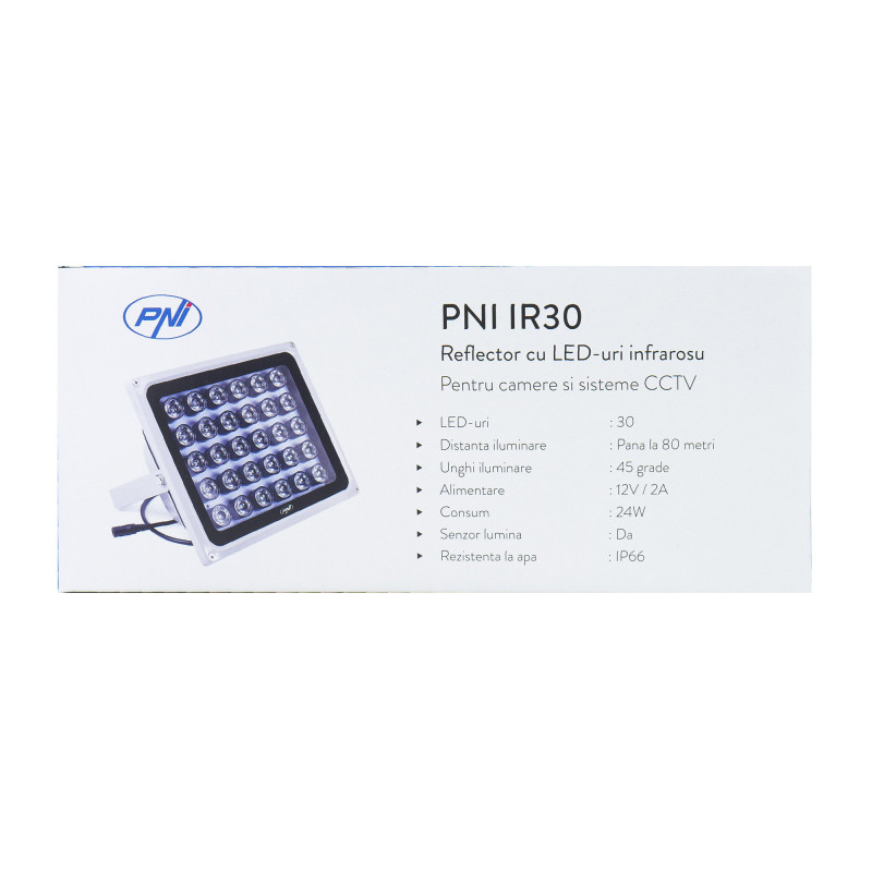PNI IR30 reflektorius su infraraudonųjų spindulių šviesos diodais kameroms ir vaizdo stebėjimo sistemoms, 30 IR šviesos diodų, atstumas 80 m, IP66