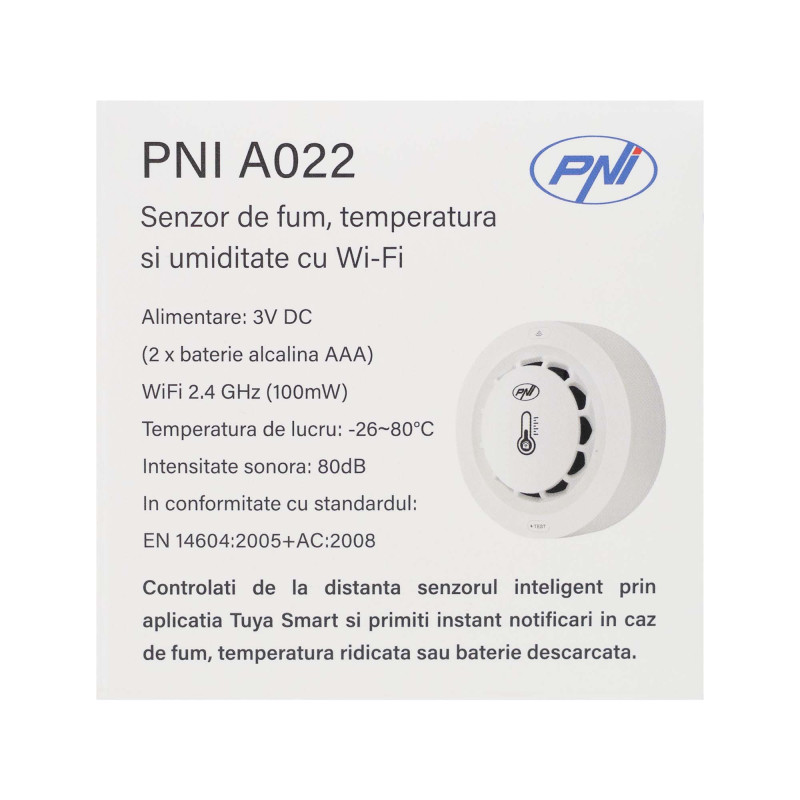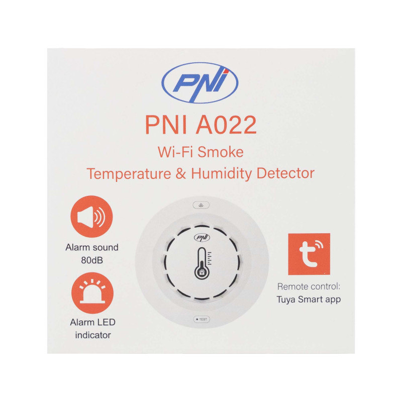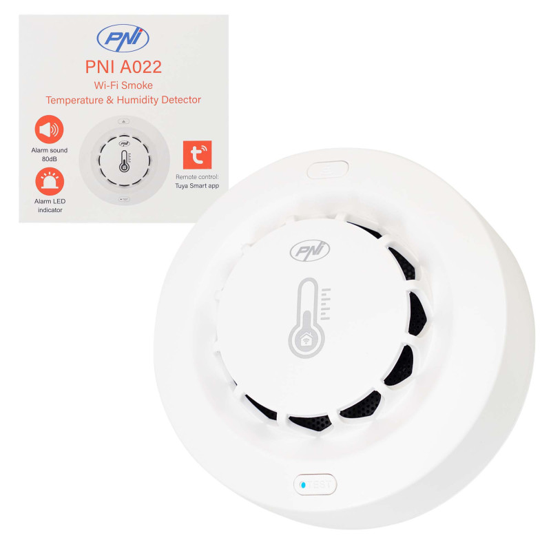 PNI SafeHouse A022 smoke, temperature and humidity sensor with Wi-Fi, compatible with Tuya application, sound alarm 80dB