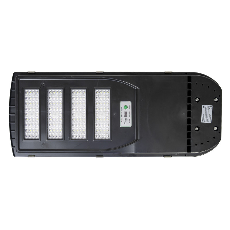 PNI SL130 300W gatvių apšvietimo lempa su įmontuota 20W saulės baterija, 6500K, 2900lm, 4 x įmontuota 20Ah baterija, mik