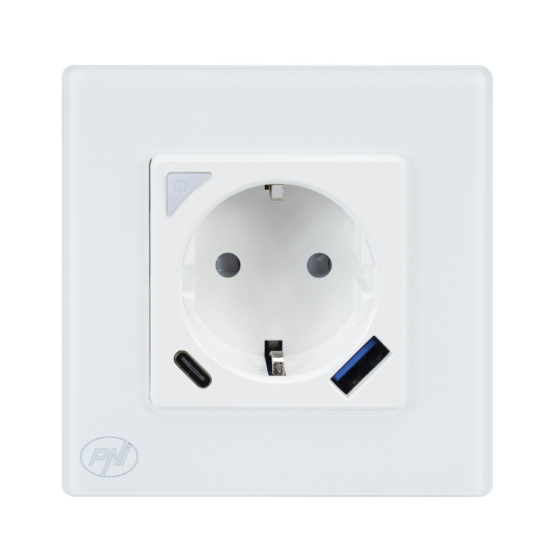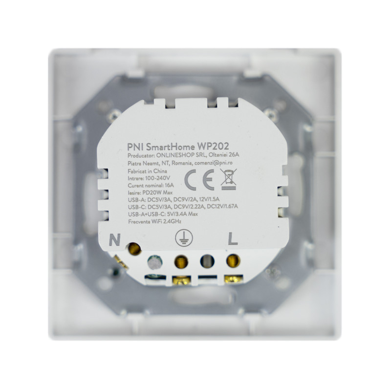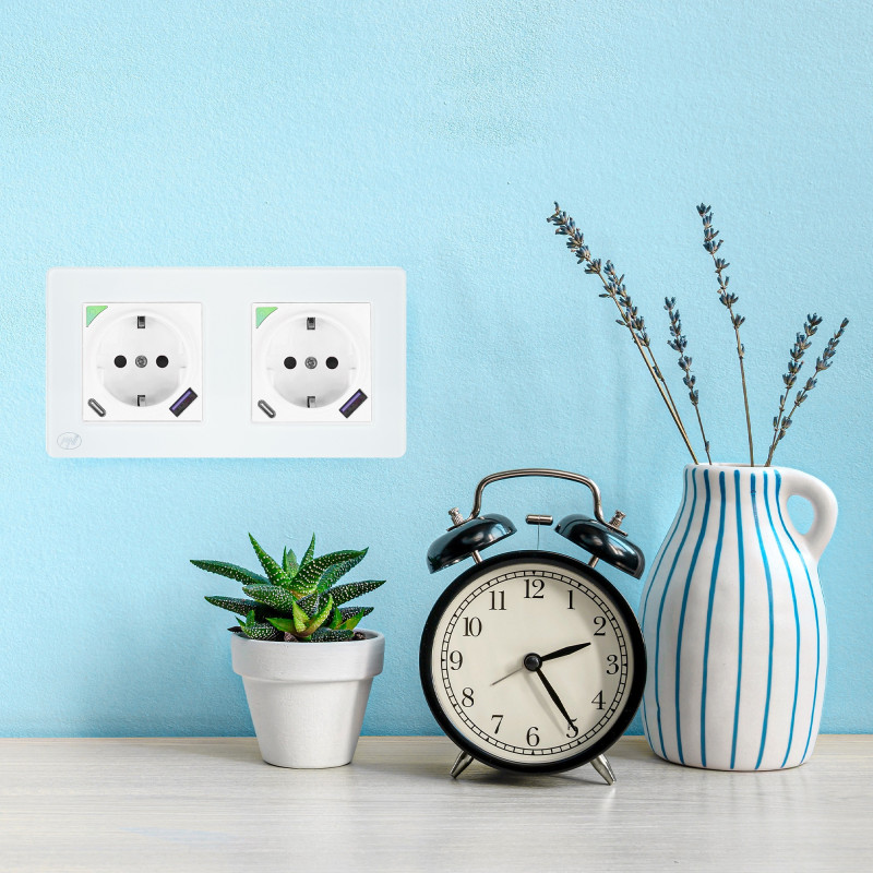PNI SmartHome WP202 WiFi smart double socket kit with mounting frame, internet control, dedicated Tuya Smart app, compatible with Amazon Alexa and Google Home