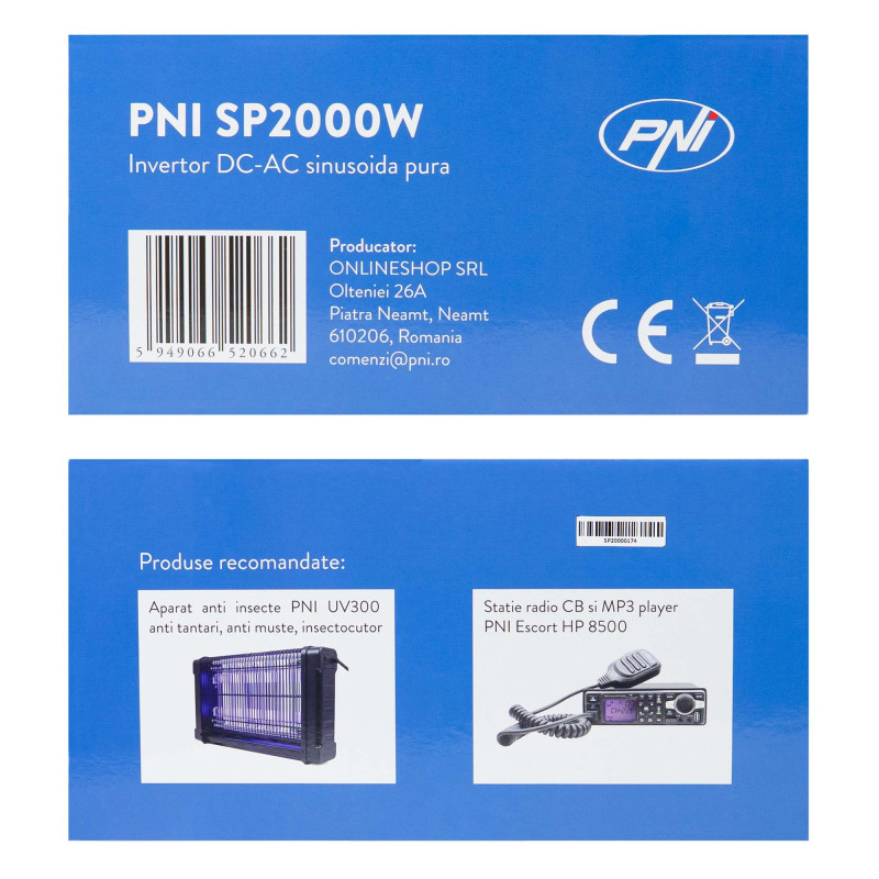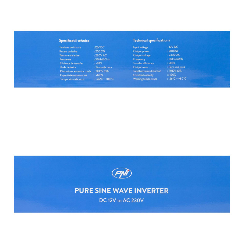 PNI SP2000W įtampos keitiklis su grynu sinusoidu, 12 V maitinimo šaltiniu
