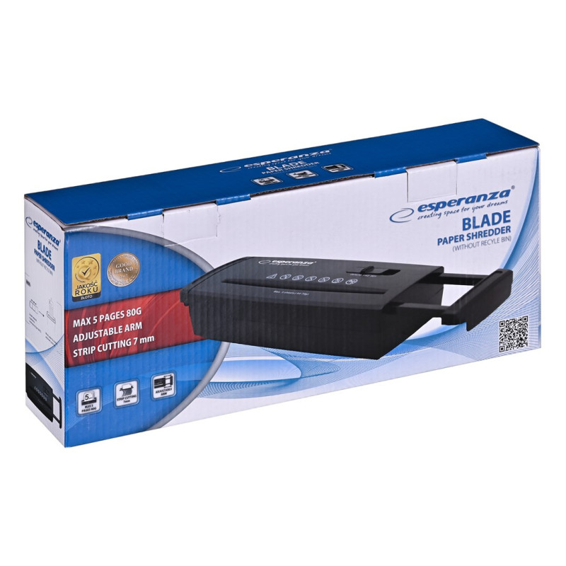 Esperanza EN104 popieriaus smulkintuvas su 22 cm darbo plotu ir juostiniu smulkinimu užtikrina efektyvų popieriaus smulkinimą 3,5 mm/min greičiu, todėl puikiai tinka kasdieniam naudojimui.