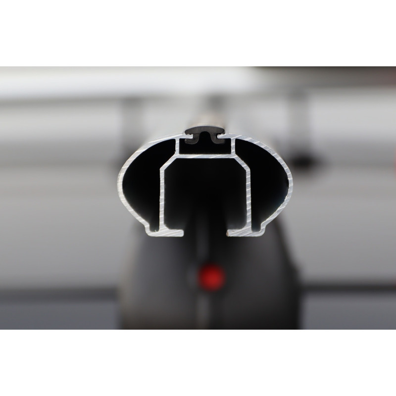 Lengvas aliuminio stogo bagažinės laikiklis. Pagrindiniai jo privalumai – patvari konstrukcija, aerodinaminė forma ir aukštos kokybės medžiagos. Dėl itin praktiško montavimo galima vienu metu montuoti kelis priedus naudojant spaustuką arba patogius T formos griovelius. Laikiklis skirtas montuoti tik ant standartinių (pakeltų) automobilio stogo bagažinės sijų.