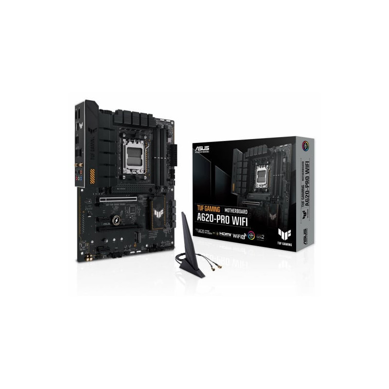 ASROCK A620AM PRO-A WIFI motininė plokštė palaiko AMD Ryzen 7000, 8000 ir 9000 serijos procesorius su AM5 lizdu. Ji siūlo dvigubos kanalo DDR5 atminties palaikymą, integruotą Wi-Fi 6E ir kelis plėtros lizdus saugojimui bei vaizdo plokštėms.