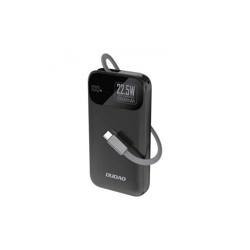 Išorinė baterija Dudao "K31" juodas 10000mAh 22.5W (PD) + integruotas laidas