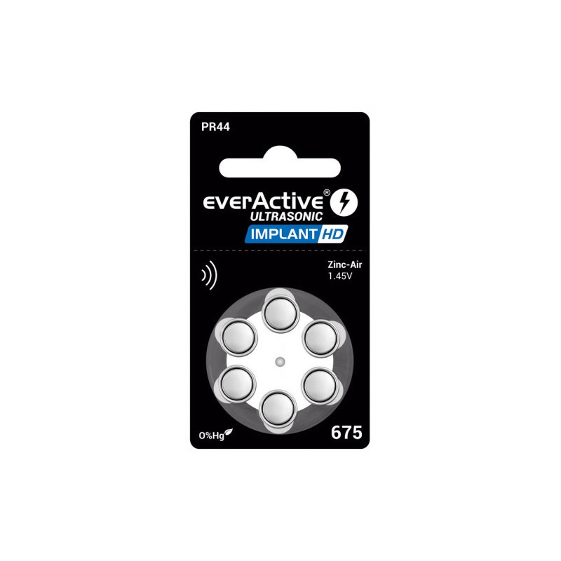 675 dydžio klausos aparato implantas HD, 1,45 V „everActive Zn-Air PR44“, 6 vnt. pakuotėje.