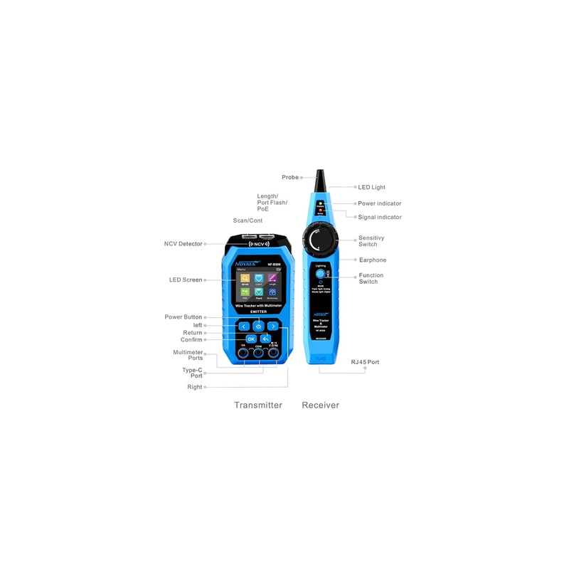 Daugiafunkcis kabelių testeris | Kabelio ilgis, POE bandymas | Prievadų bandymas | Kabelių skenavimas