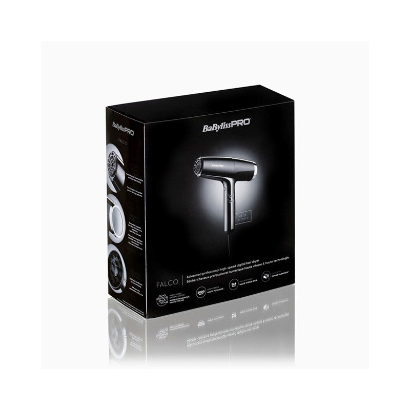 BaByliss Falco BAB8550BE yra skaitmeninis plaukų džiovintuvas, turintis 2000 W galią ir 244 km/h oro greitį. Jis siūlo tris greičio nustatymus, keturis šildymo lygius, šalto oro funkciją ir trys antgaliai, įskaitant difuzorių.
