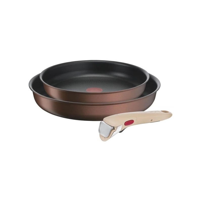 TEFAL Ingenio Easy Cook Clean 5 dalių puodų rinkinys apima du puodus ir du keptuves, pagamintas iš aliuminio su nelipniu titano danga. Rinkinys turi nuimamą rankeną, yra atsparus karščiui ir tinka įvairiems viryklės tipams, įskaitant dujines, keramines ir halogenines.