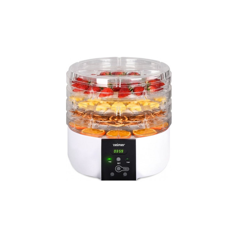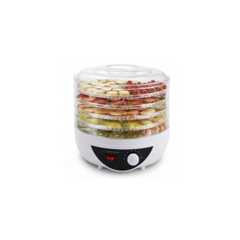 250 W maisto džiovintuvas su reguliuojamu termostatu ir 4 erdviomis padėklais. Veikia nuo 230 V, 50 Hz AC maitinimo šaltinio.