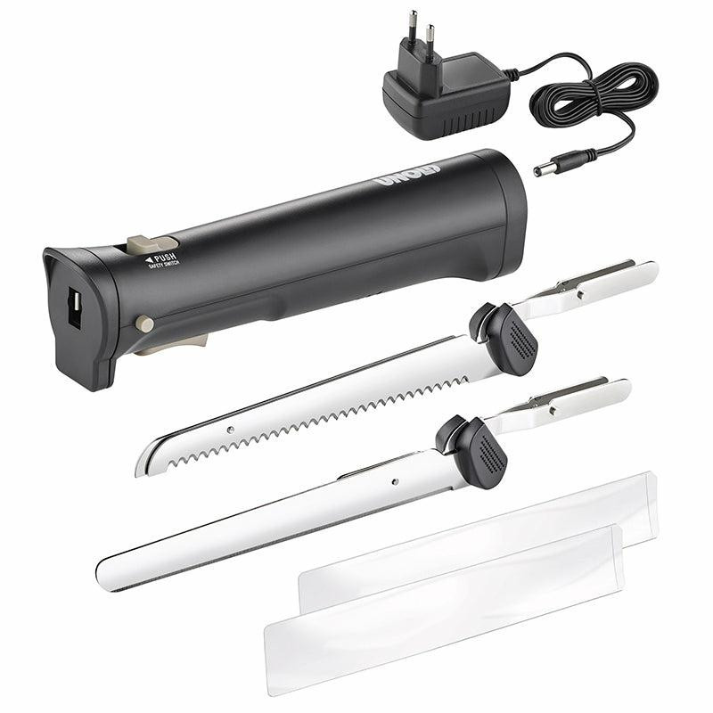 Unold belaidis elektrinis peilis leidžia lengvai pjaustyti įvairius maisto produktus, turėdamas įkraunamą bateriją, kuri užtikrina iki 60 minučių naudojimo. Jame yra nerūdijančio plieno peiliai, ergonomiška rankena patogumui ir saugos funkcijos, tokios kaip užrakinimo mechanizmas ir peilio apsauga.
