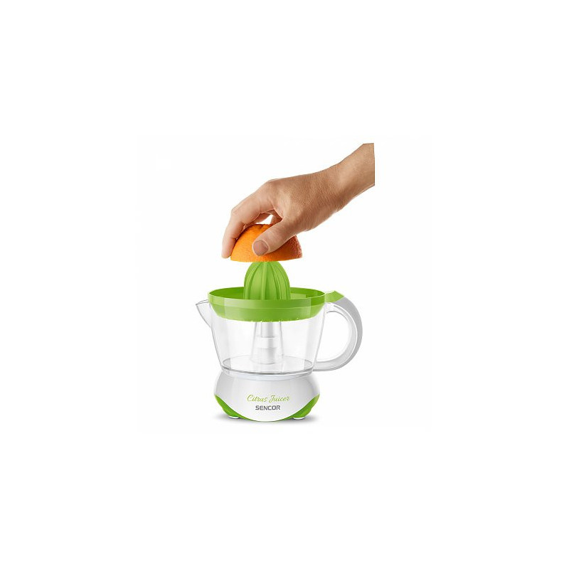 Kompaktiškas citrusų spaustuvas su 1,2 L talpykla ir nuimama minkštimo talpykla užtikrina patogų valymą ir tikslų sulčių išgavimą.
