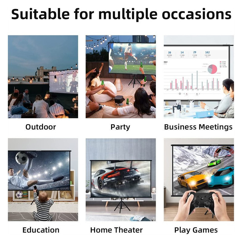 • Easy to use - The projector screen with stand does not require hanging on the wall - it can be simply set up and ready for use in a few minutes. If you prefer to mount it on the wall, the hooks on the side make it quick and convenient.