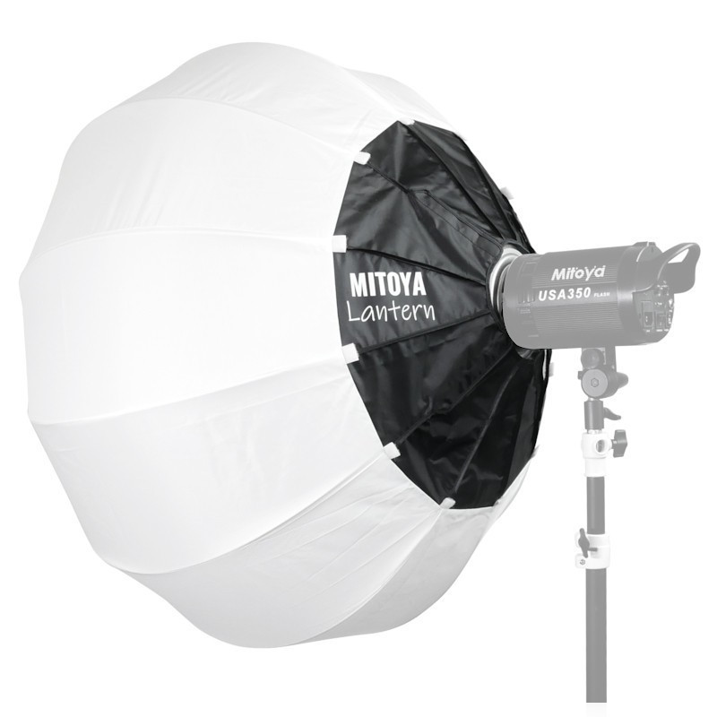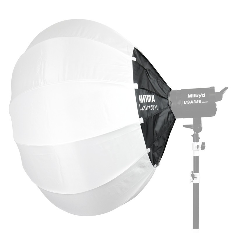 MITOYA Lantern yra 85 cm skersmens sferinis softbox su Bowens tvirtinimu, sukurtas švelniam ir natūraliam apšvietimui. Jis pasižymi greitu surinkimu, plačiu šviesos sklaidos kampu iki 270 laipsnių ir nuimamu šviesos krypties dangteliu.