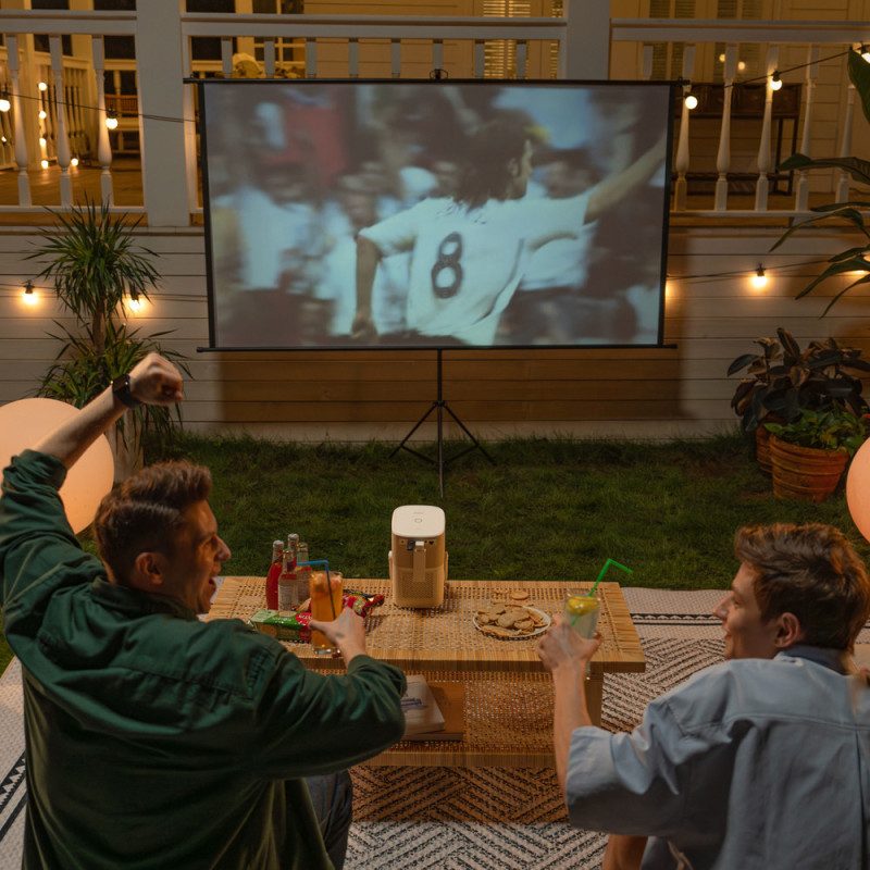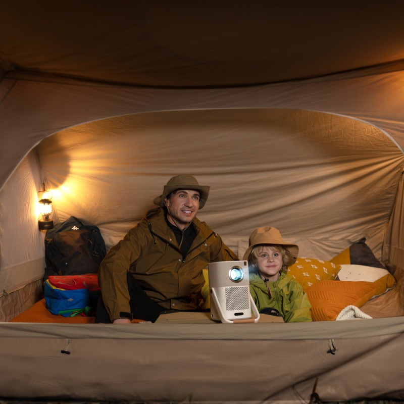 Gerai apgalvotas projektoriaus dizainas praturtintas rankena, kuri sukasi aplink korpusą 360° kampu, suteikdama maksimalų lankstumą jį nustatant. Be to, tai ne tik rankena – ji taip pat veikia kaip stabilus stovas, kurio dėka galite lengvai nustatyti projektorių tobulu kampu. Nesvarbu, ar projektuojate vaizdą ant sienos, lubų, ar norite pakeisti padėtį keliaudami – ši funkcija leidžia pritaikyti nustatymus prie bet kokios situacijos be papildomų priedų.