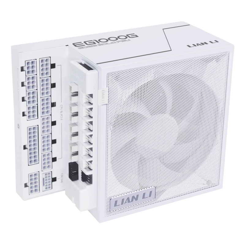 | Summary | Lian Li EG1000G. Total power: 1000 W, AC input voltage: 100 - 240 V, AC input frequency: 50/60 Hz. Motherboard power connector: 20+4 pin ATX, Motherboard power cable length: 50 cm, SATA power cable length: 300,400 mm. Purpose: PC, Power supply unit (PSU) form factor: ATX, 80 PLUS certification: 80 PLUS Platinum. Product colour: White, Fan diameter: 12 cm. Cables included: CPU, PCIe, Peripheral (Molex), SATA |