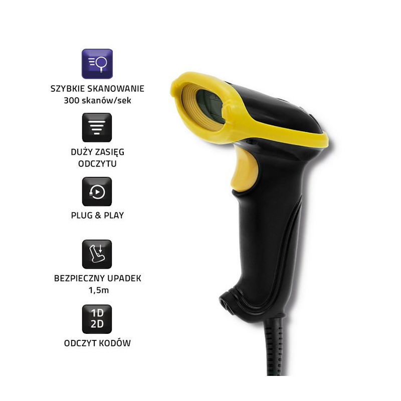 Qoltec 50867 Laser reader 1D | 2D | USB | Black