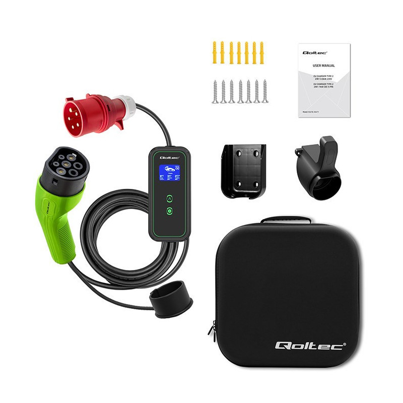 Qoltec 52475 elektromobilio įkrovimo kabelis, juodas, 2 tipo, 5 m