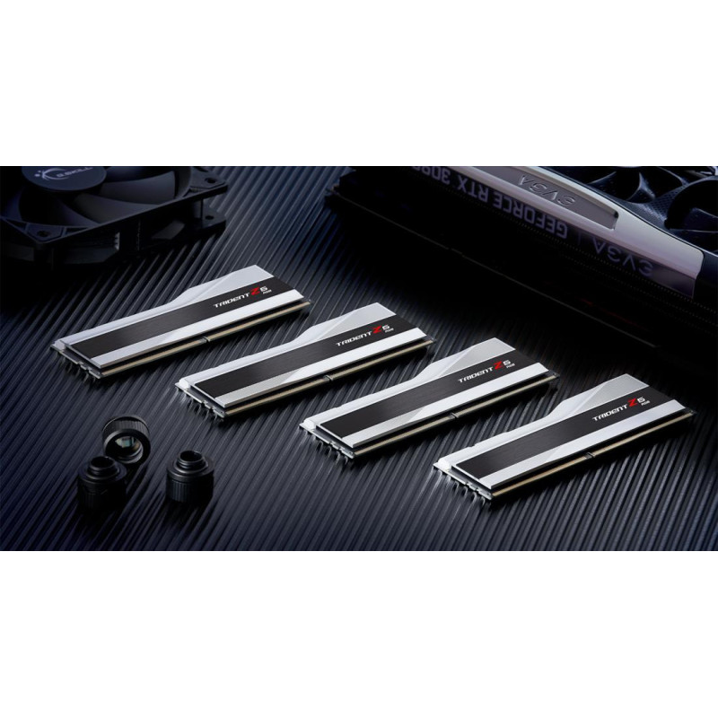 „Trident Z5 RGB DDR5“ atmintis yra naujausia „G.SKILL“ flagmanų serija, sukurta itin dideliam našumui užtikrinti naujos kartos DDR5 platformose. „Trident Z5 RGB DDR5“ atmintis, pasižyminti elegantišku ir moderniu aliuminio šilumos paskirstytojo dizainu, yra metalinio sidabro arba matinės juodos spalvos, todėl tai idealus pasirinkimas žaidėjams, spartintojų, turinio kūrėjams ir entuziastams, norintiems sukurti didelio našumo sistemą.