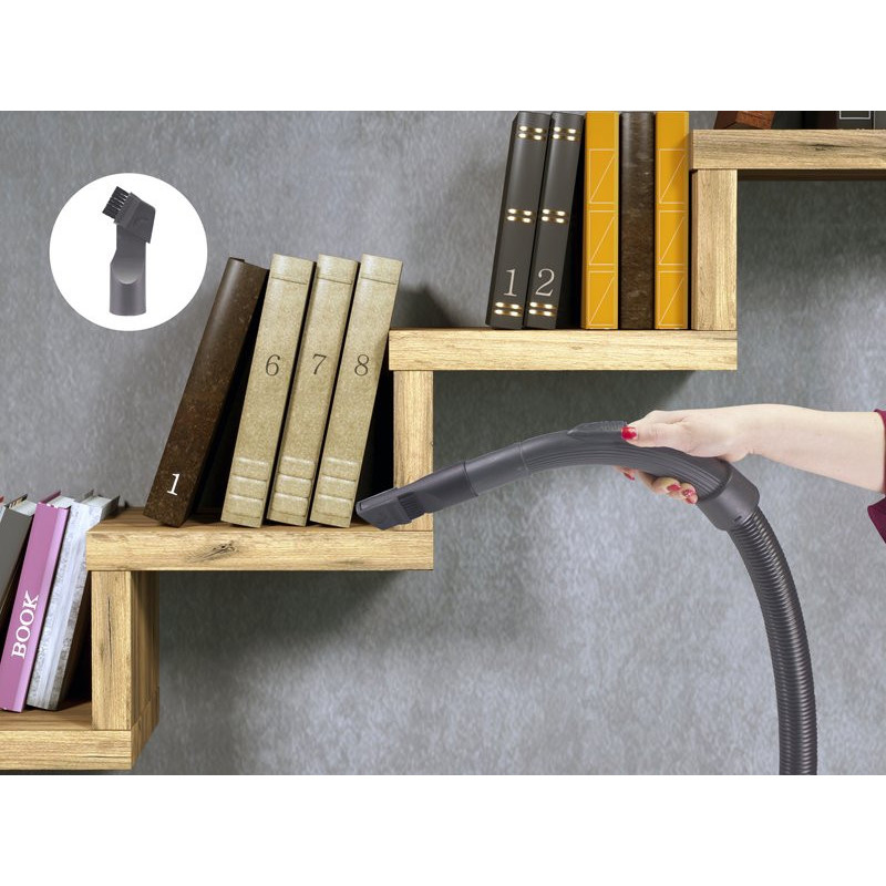 Kompaktiškas ir patogus dulkių siurblys, lengvai naudojamas namuose. Cikloninis siurbimas ir kempinės filtras leidžia surinkti net mažiausias dulkių daleles. Didelė 3 litrų talpos bako be maišelio funkcija leidžia lengvai ištuštinti ir išvalyti. Pridedamas 2 viename plyšių antgalis ir šepetys.