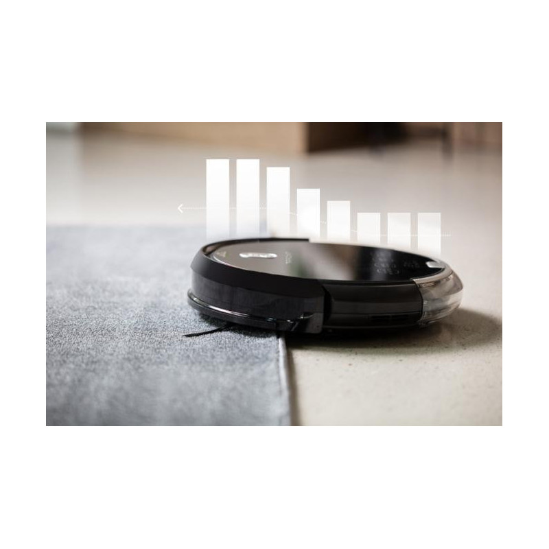 Naudodamas 12 judesio jutiklių , jis lengvai nusprendžia, kur eiti, ir elegantiškai pasuka priešais laiptus . Tada integruota ANTI COLLISION SISTEMA atpažįsta kliūtis , dulkių siurblys nerangiai į jas neatsitrenkia.
