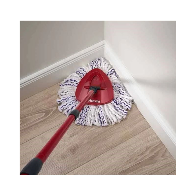 Patirkite lengvą valymą su Vileda Turbo 3w1 sukamuoju mopu! Mikropluošto galvutė efektyviai surenka nešvarumus ir dulkes, o patogi išgręžimo sistema užtikrina greitą valymą - idealiai tinka blizgantiems grindims!