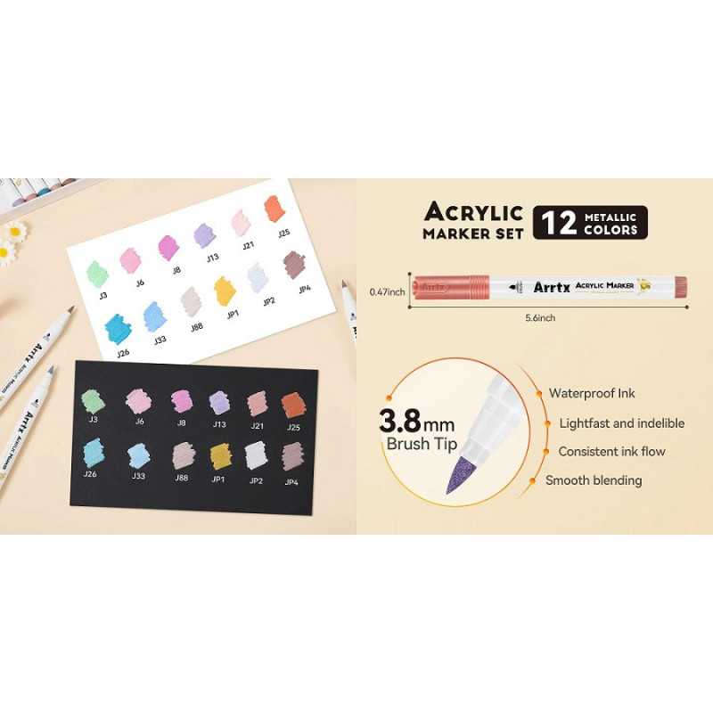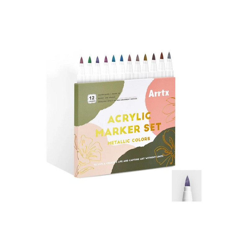 Akriliniai markeriai - flomasteriai ARRTX, 12 spalvų, metalinių atspalvių