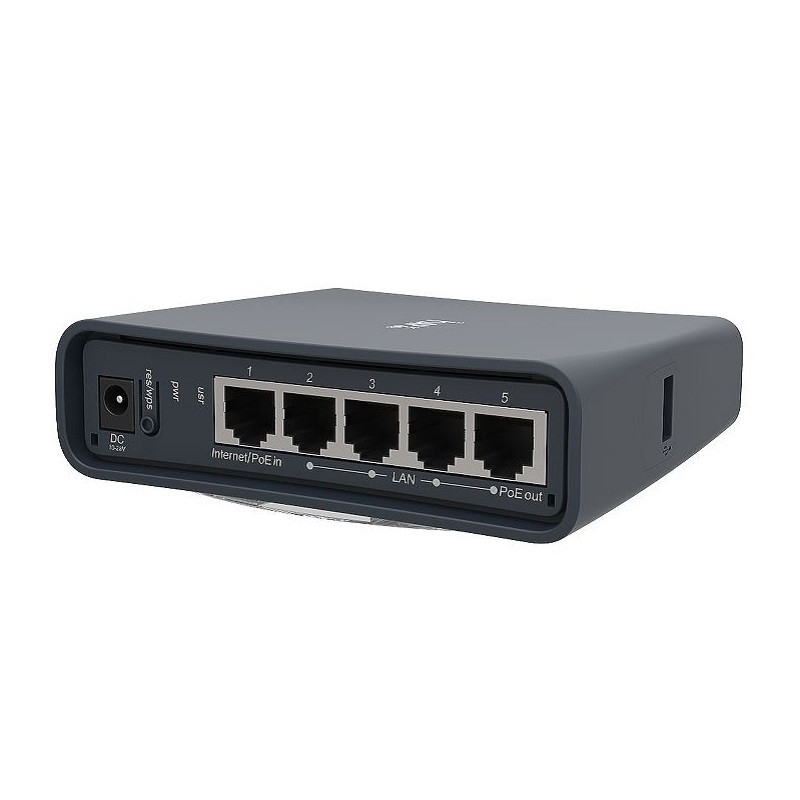 Unit is equipped with a 650MHz CPU, 64MB RAM, five 10/100Mbps Ethernet ports (PoE output on port #5), dual-chain 802.11b/g/n 2.4GHz wireless, single chain 802.11ac 5GHz wireless, USB port for 3G/4G modem and a RouterOS L4 license.