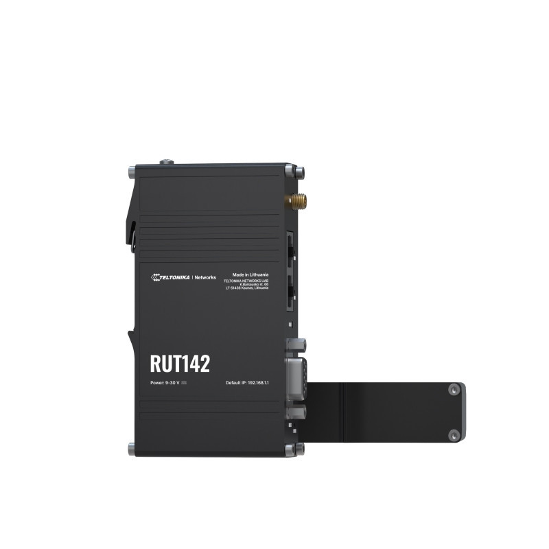 The RUT142 is a compact industrial Ethernet router, enhancing security through network isolation for end devices. Equipped with the RS232 serial interface, two Ethernet ports, DIN rail bracket, and an industrial 3-pin connector, it ensures seamless connectivity and easy installation. The router comes with RutOS, Wi-Fi 4, and supports industrial protocols such as Modbus, DLMS, DNP3, and OPC UA, and is compatible with RMS for efficient remote and on-site management.