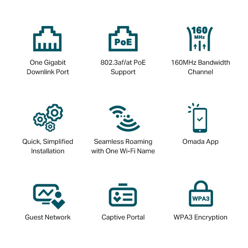 Cloud AccessYes. Requiring the use of OC300, OC200, Omada Cloud-Based Controller, or Omada Software Controller.