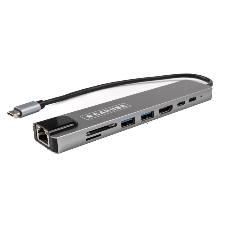 USB Hublis - Caruba 8 in 1 USB C Hublis Ethernet, USB A, HDMI, 100W PD, Pilkas