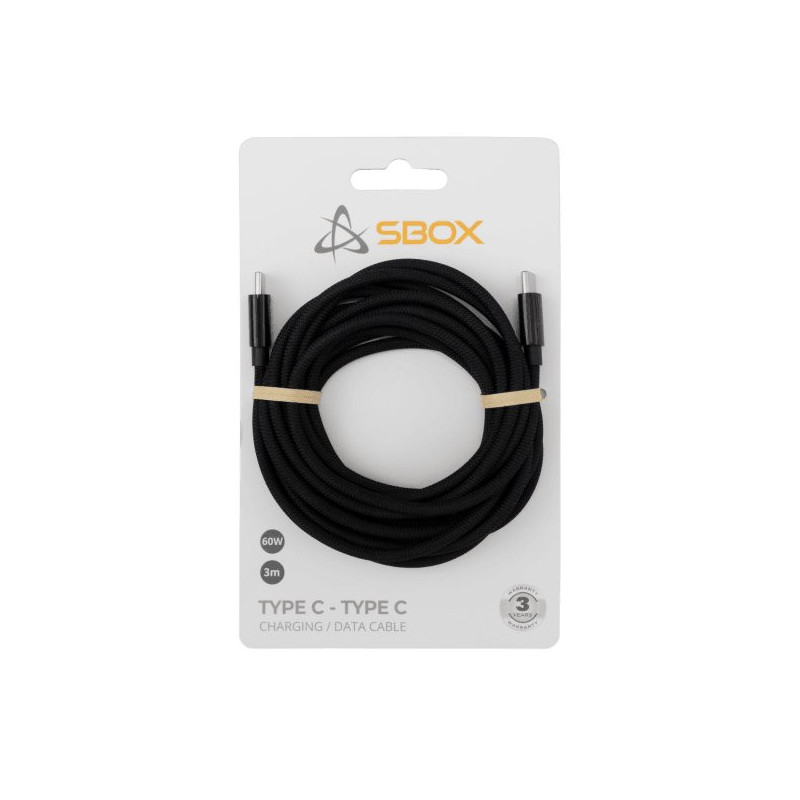 Kabelis SBOX USB Type-C -> USB Type-C M/M 3M juodas - 60W